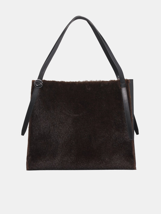 Featuring:• Split suede leather construction• Structured silhouette with collapsed shape• Multi-pocket design with zip compartments• Double top handles• Adjustable crossbody strap• Branded key charm• Signature button logo detailing• Logo embossing• Measurements: 28cm x 42cm x 11cm• Drop handle: max 8cm• Crossbody strap: adjustable 42cm to 65cm• Made in Italy• Main: 100% Calf leather | Lining: 50% Polyester 50% Polyurethane | Contrast: 100% Lamb leather• One size
