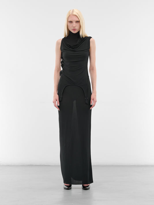 Featuring:• Slim fit• Wool-alpaca blend knit construction• Round neck• Sleeveless with armholes• Back cross straps and self-tie fastening• Layered back cut-outs• Maxi length• Made in South Korea• 53% Wool 30% Nylon 17% Alpaca• Standard sizing