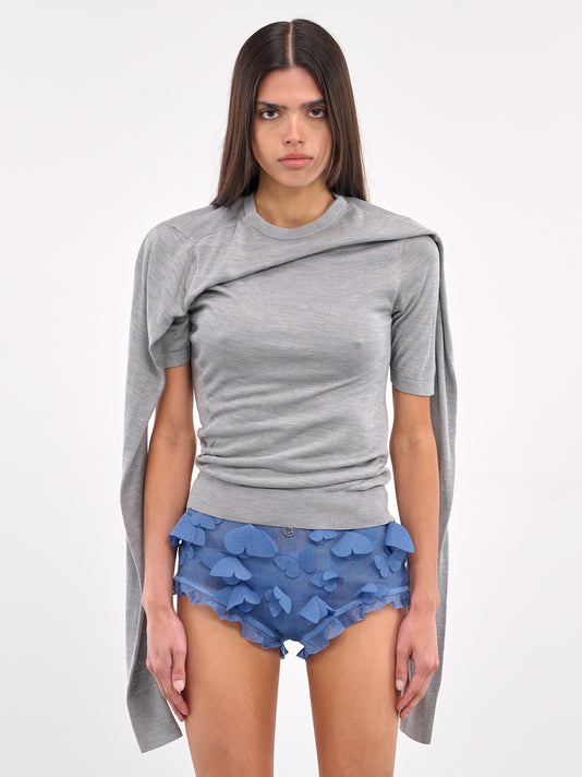The Distort tee in black delivers sculptural movement with its asymmetric, twisted silhouette and exaggerated, relaxed short sleeves. Drape and gather detailing create visual fluidity in the dry jersey cotton.