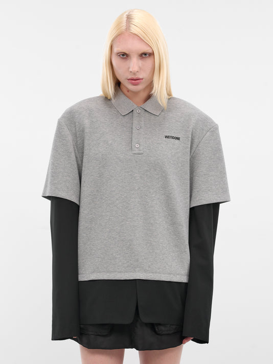 Black and gray t-shirt in cotton with a layered sleeve design and cropped slim fit.