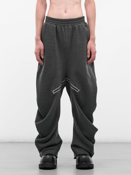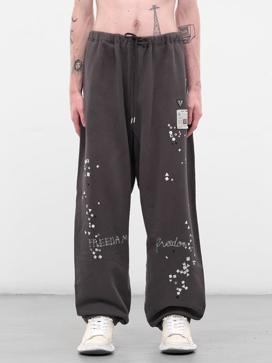 Black sweatpants in cotton with a washed finish, baggy wide-leg silhouette, and rib-knit cuffs.