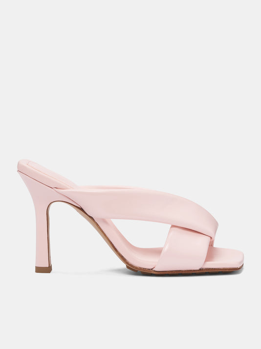 Pink Supima cotton mini dress with exposed seams. Finished with asymmetric layered ruffle trim and spaghetti straps.