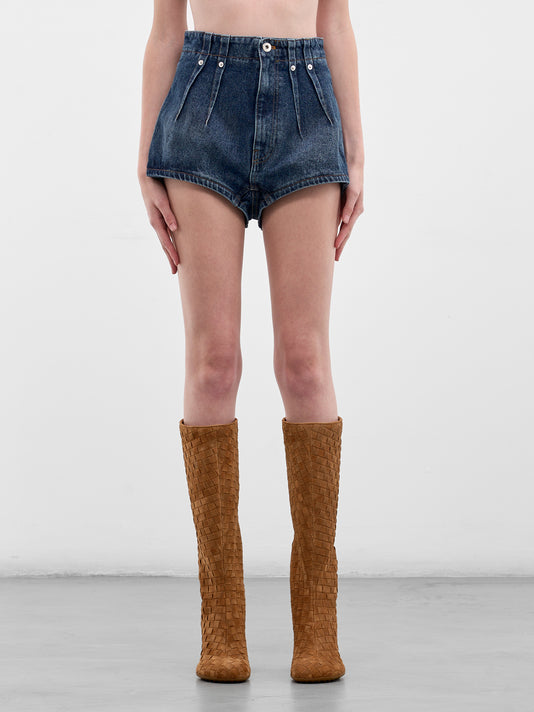 Blue Tailored Denim Mini Shorts
