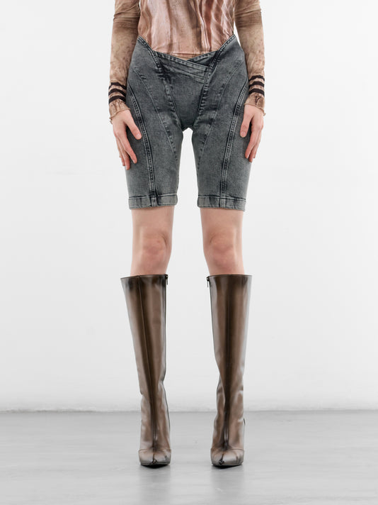 Celest Denim Asymmetric Drainpipe Shorts