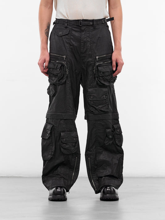 Featuring:• Relaxed fit• Wide leg• Belt loops• Front button and zip fly closure• Pleated• Side and back buttoned flap pockets• Side cargo pockets• Adjustable drawstring at hem• Made in Japan• 90% Wool 10% Nylon• Japanese sizing