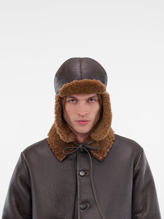 Brown Lamb Leather Aviator Hat