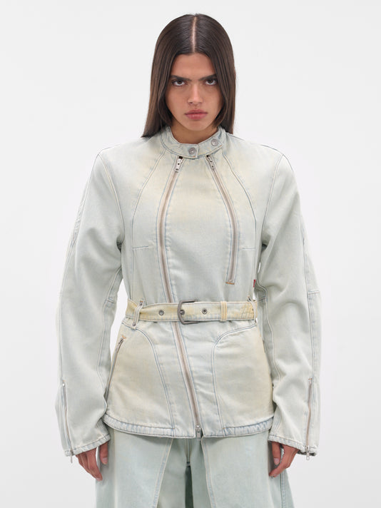 Light wash flared jeans in non-stretch denim with tinted placement details and a godet zipper at the hem that unzips into a loose, sculptural flare. Collaboration between Kiko Kostadinov and Levi’s.