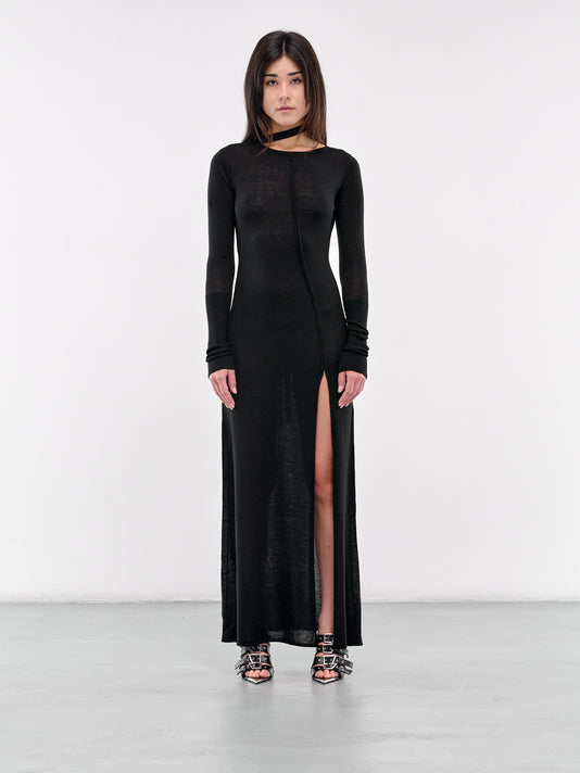 Featuring:• Slim fit• Viscose-blend construction• High turtleneck collar• Long fitted sleeves• Stretch bodice• Voluminous draped skirt gathered at hips• Open panels at front and sides• Back invisible zip closure• Floor-length• Made in Poland• 78% Viscose 17% Polyamide 5% Elastane• French sizing