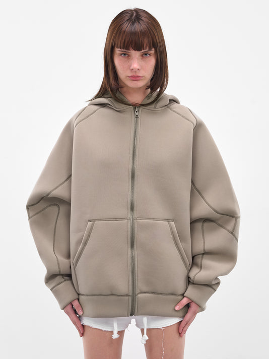 Maison Margiela reversible jacket in coated polyamide with checked wool interior, finished with leather reinforcements.