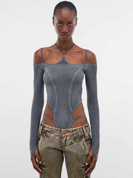 Featuring:• Slim fit• Denim construction• Faded and dyed• Spread collar with pin-buckle strap• Front hook-eye closure• Long sleeves with button cuffs• Chest buttoned flap pockets• Peplum hem and vents• Standard sizing• Miss Sixty and KNWLS collaboration