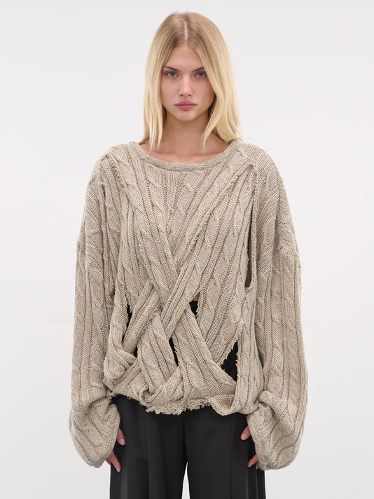 • Brown Cable-Knit Sweater (S62HN0008-M13195-143-BROWN)