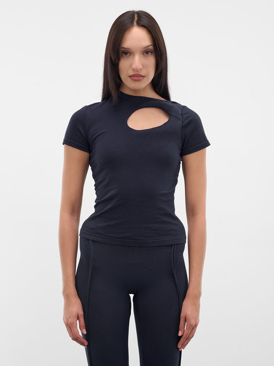 Featuring:• Slim fit• Poly knit construction• Sculptural design• Distressing and cut-outs• Boat neck• Back self-tie fastenings with open cut-outs• Short sleeves with front slit and draped straps• Asymmetric cropped hem• Made from 100% Polyester• Standard sizing