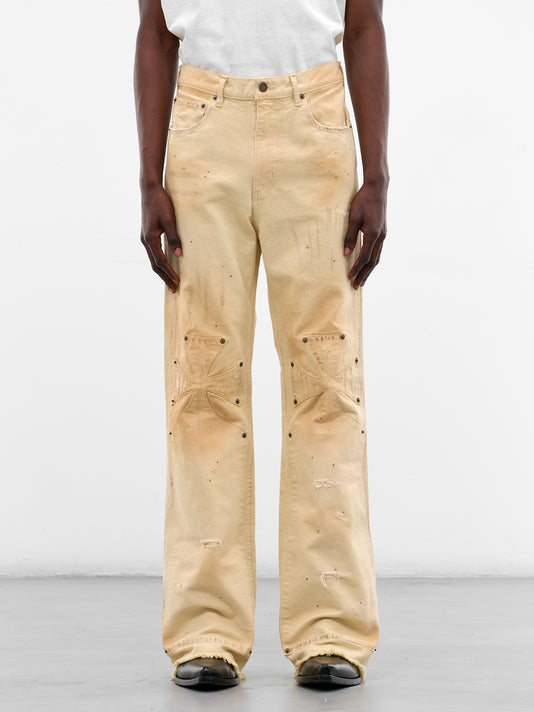 Featuring:• Boxy fit• Pointed collar• Two-way zip closure• Long sleeves• Button cuffs• Diagonal X front zip pockets• Cropped length• Dirty and stained treatment• Raw hems and distressing• Made in US• 100% Cotton• Standard sizing