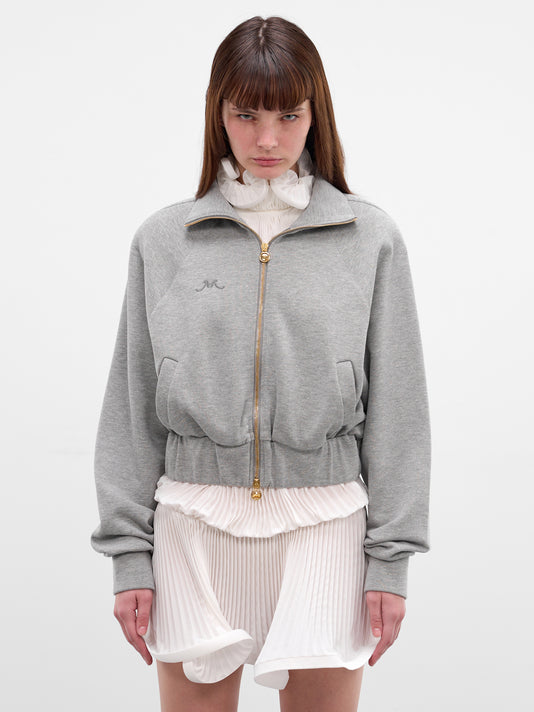 Ecru Satin Off-Shoulder Zip Jacket