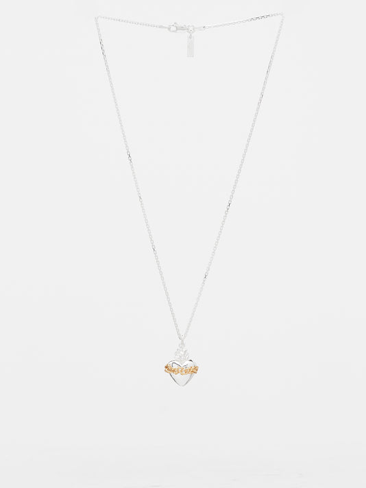 A silver-tone locket necklace from the D’Heygere collaboration in brass construction. Features an oversized heart locket, chainlink necklace, toggle fastening, and interior fingerprint texturing.