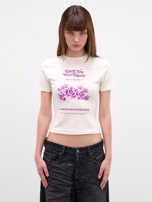 White cotton-lyocell t-shirt with deconstructed design and trompe l'oeil sleeves at front.