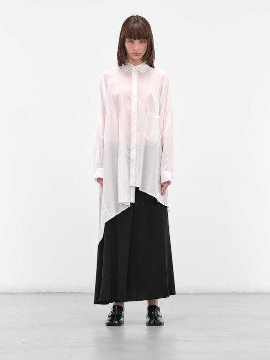 White Raglan Draped Asymmetric Shirt
