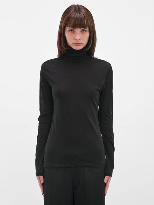 Black Cotton Jersey Turtleneck