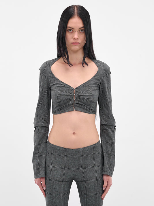 Gray capri pants in a glen check jersey with a cropped slim fit. Side vents at the cuffs soften the low-waist silhouette.