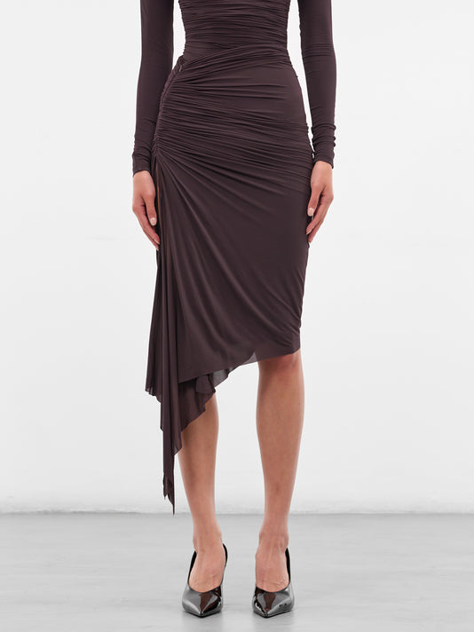Featuring:• Slim fit• Asymmetric paneling• Ruching and gathering throughout• High neck• Side concealed zip closure• Long sleeves• Made in Italy• 96% Viscose 4% Elastane• Italian sizing