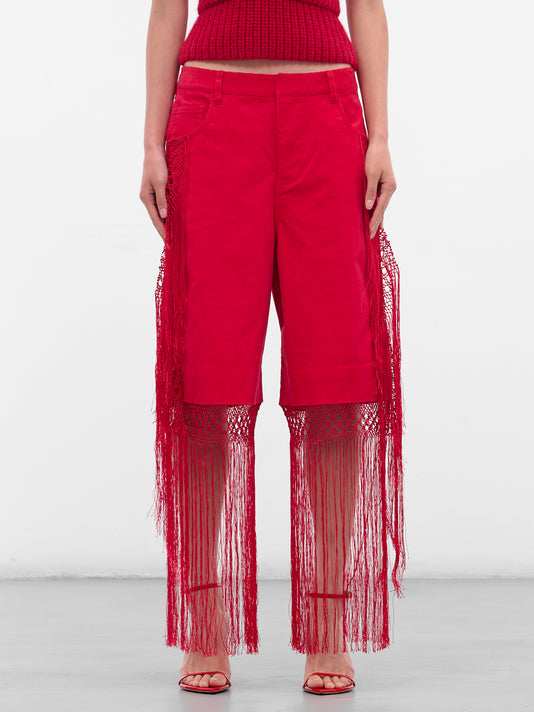 A slim halterneck knit top in red with plunged neckline, sleeveless construction, and open back.