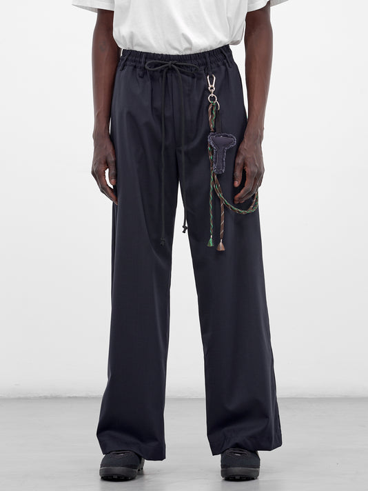 Navy Wool Elasticated Wide Trousers