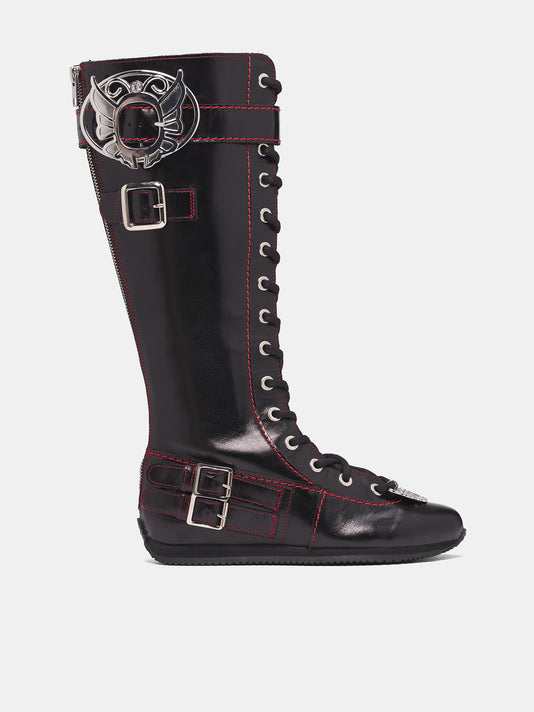 Black Leather Stefanie High Boots