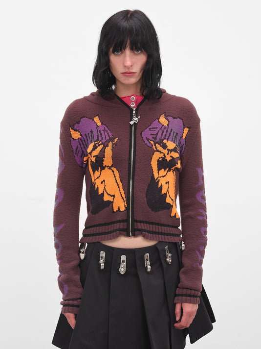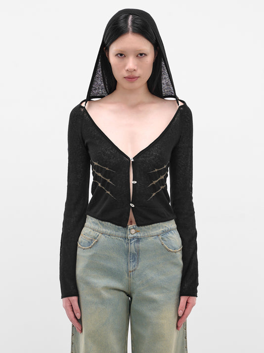 Black Thorn Intarsia Hooded Cardigan
