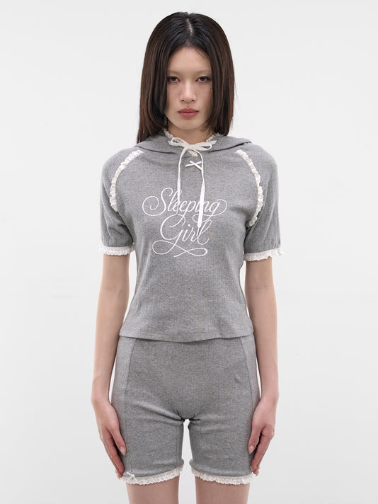 Balloon hoodie in white constructed from cotton with a happy birthday graphic print and cropped boxy silhouette.