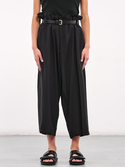 Featuring:• Baggy fit• Wide leg• Cropped length• Pinstripe pattern• Asymmetric draping throughout• Elasticated waistband• Side pockets• Made in Japan• 98% Wool 2% Polyester• Standard sizing