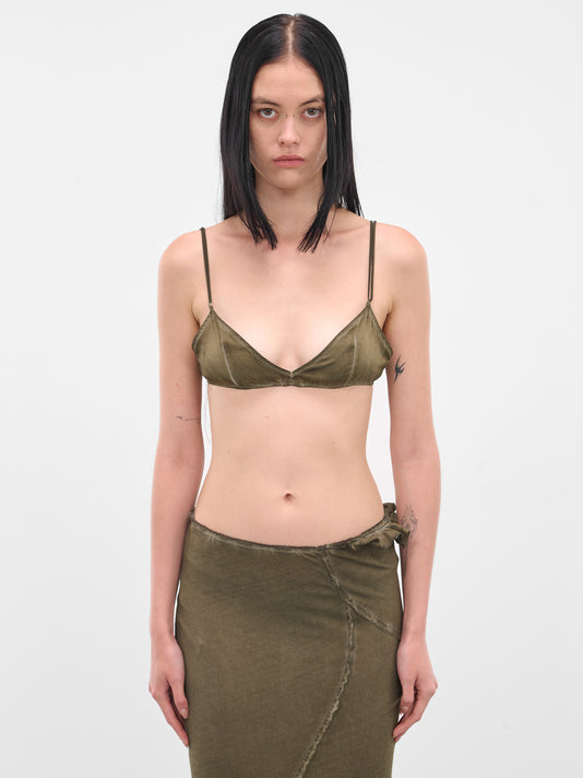 Red mesh bralette in semi-sheer construction. Completed with scoop neckline and back clasp fastening.