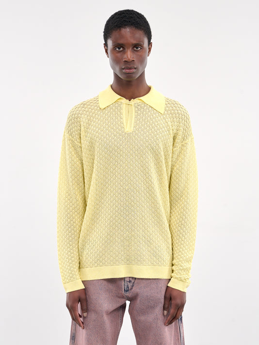 Featuring:• Relaxed fit• Striped knit pattern• Spread collar• Quarter button placket closure• Long sleeves• Rib-knit cuffs and hem• Made in China• 65% Wool 23% Viscose 12% Nylon• Standard sizing