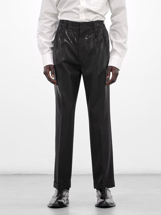 Black Wool Coated Tailored Trousers
