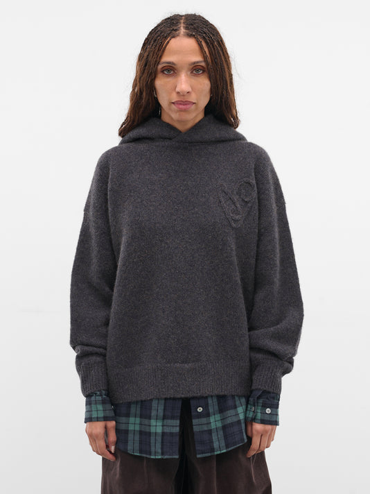 Black hooded zip-through sweatshirt in cotton with distressed finishes and ribbed trims, detailed with discreet “MM” embroidery and Maison Margiela’s four stitches at the back.