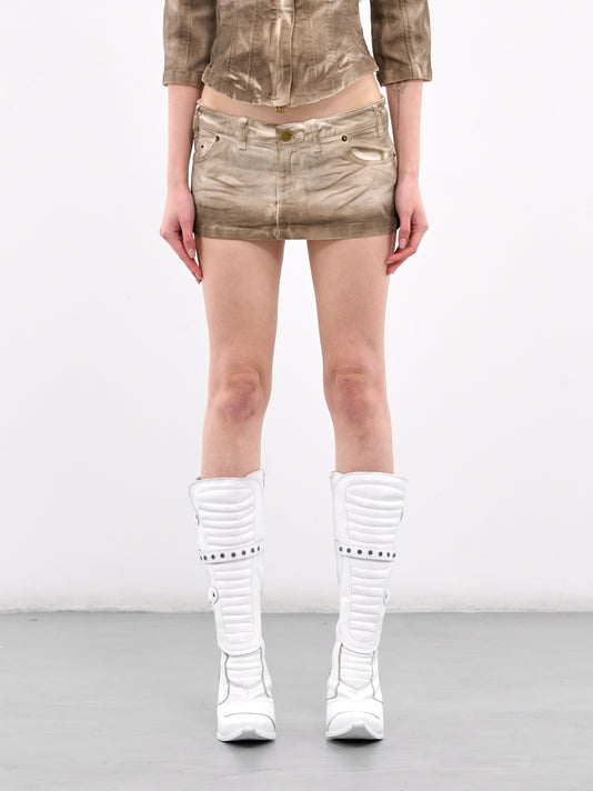 Featuring:• Slim fit• Denim construction• Deconstructed upside-down design• Mid-waist• Upside-down waistband• Front zip fly• Upside-down pockets• Mini-length• Made in Italy• 100% Cotton• Standard sizing